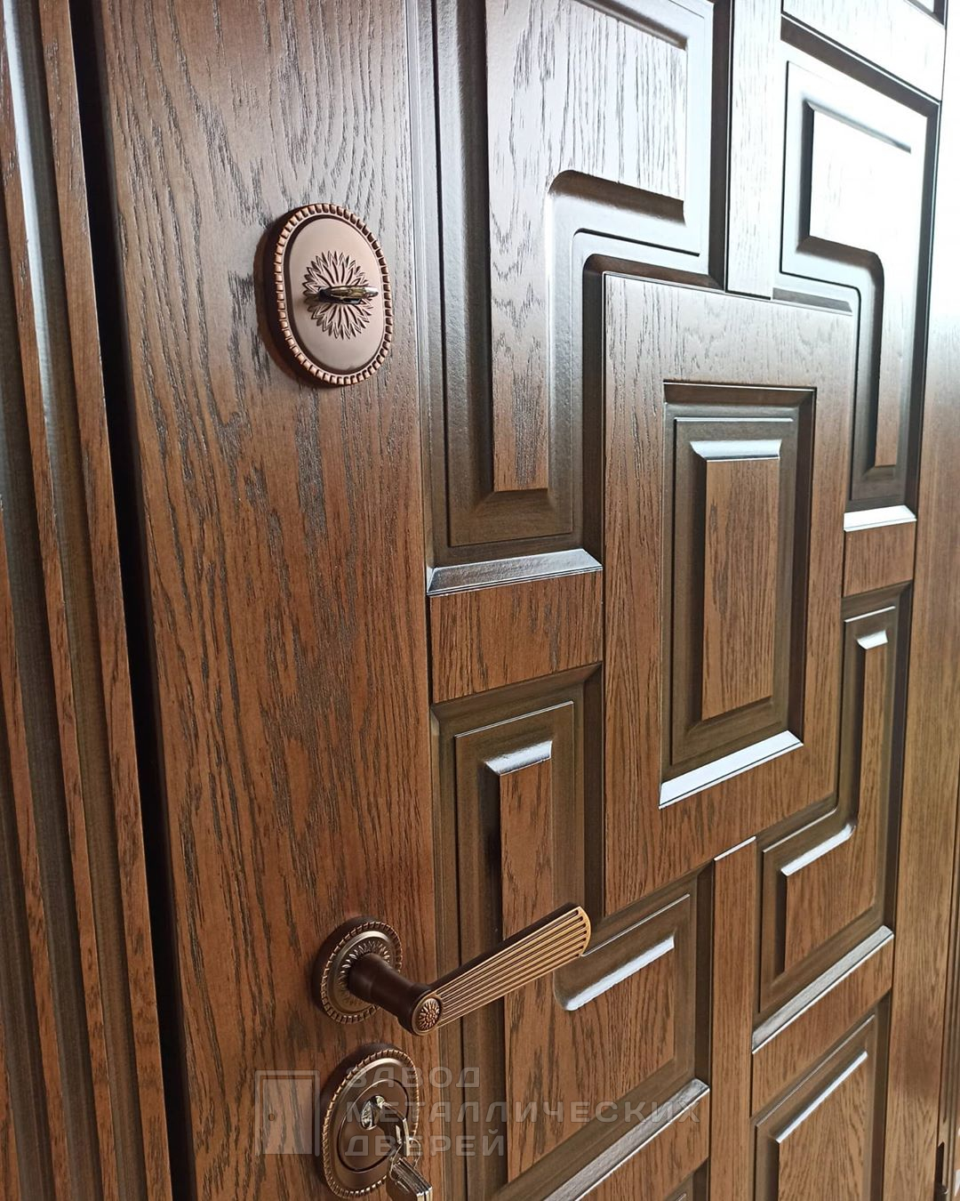 Для дополнительной безопасности предусмотрены два надежных замка: верхний сувальдный замок Просам с тремя ригелями и нижний цилиндровый замок Мосрентген, также с тремя ригелями. Эти замки гарантируют высокий уровень защиты и долговечность. В дверь можно добавить зеркало, стеклопакет или кованые элементы, а также заменить замки на более сложные модели, такие как Гардиан, Border или электронные умные замки. Возможность изготовления наличников и доборов в цвет двери, а также установка видеодомофона делают эту модель еще более универсальной и подходящей для создания индивидуального дизайна.