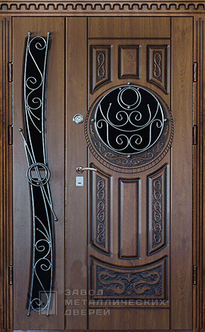 Парадная входная дверь для частного дома и коттеджа, когда хочется не просто «железку», а солидный вход. С обеих сторон — панели из натурального дерева: дубовая фактура выглядит дороже ламинации и годами сохраняет ухоженный вид. Снаружи — ковка и стеклопакет: в прихожей становится светлее, а фасад получает благородный акцент без лишнего пафоса. В тёплой двери с дубовой облицовкой и кованой отделкой снаружи №55 за безопасность отвечают два замка: сувальдный Просам и цилиндровый Мосрентген, по 3 ригеля каждый. Открывание можно выбрать левое или правое, наружное или внутреннее. При желании поставим Гардиан, Border, Cisa, Kale Kilit, Эльбор, Mottura или умный замок, добавим видеодомофон, наличники и доборы в тон. Тёплая дверь дубовая облицовка и кованная отделка снаружи №55 по выгодной цене с доставкой и установкой в от производителя.