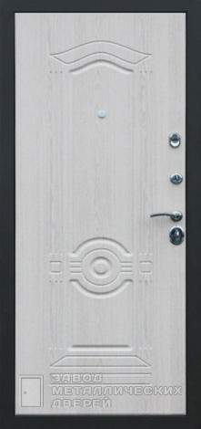 Внешняя и внутренняя отделка выполнены в современном стиле, что делает эту модель универсальной для любых интерьеров. Кроме того, дверь оснащена надежными замками – верхний сувальдный замок Просам и нижний цилиндровый замок Мосрентген с тремя ригелями. В комплект можно добавить кованые элементы, стеклопакет или зеркало, а также установить видеодомофон для дополнительной безопасности.
